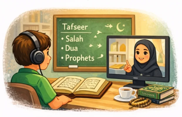 Alongside Quran reading, understanding the meanings of the verses is essential. Online Quran classes include Tafseer (interpretation) and translation, helping children grasp the teachings of the Quran. Additionally, courses cover Islamic basics such as prayer (Salah), supplications (Dua), and stories of the Prophets, fostering a holistic understanding of Islam.