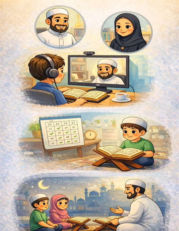 Tajweed refers to the rules for proper pronunciation of Arabic letters when reading the Quran. Online Quran lessons provide one-on-one instruction, ensuring children learn to read with the correct pronunciation and fluency, just as it was revealed.